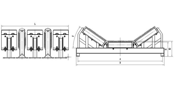 2.用戶在訂貨時注明:帶寬、緩沖條長度L、槽型角θ、帶面高度H、中間架孔距A、中間架孔徑d、地腳孔距M。